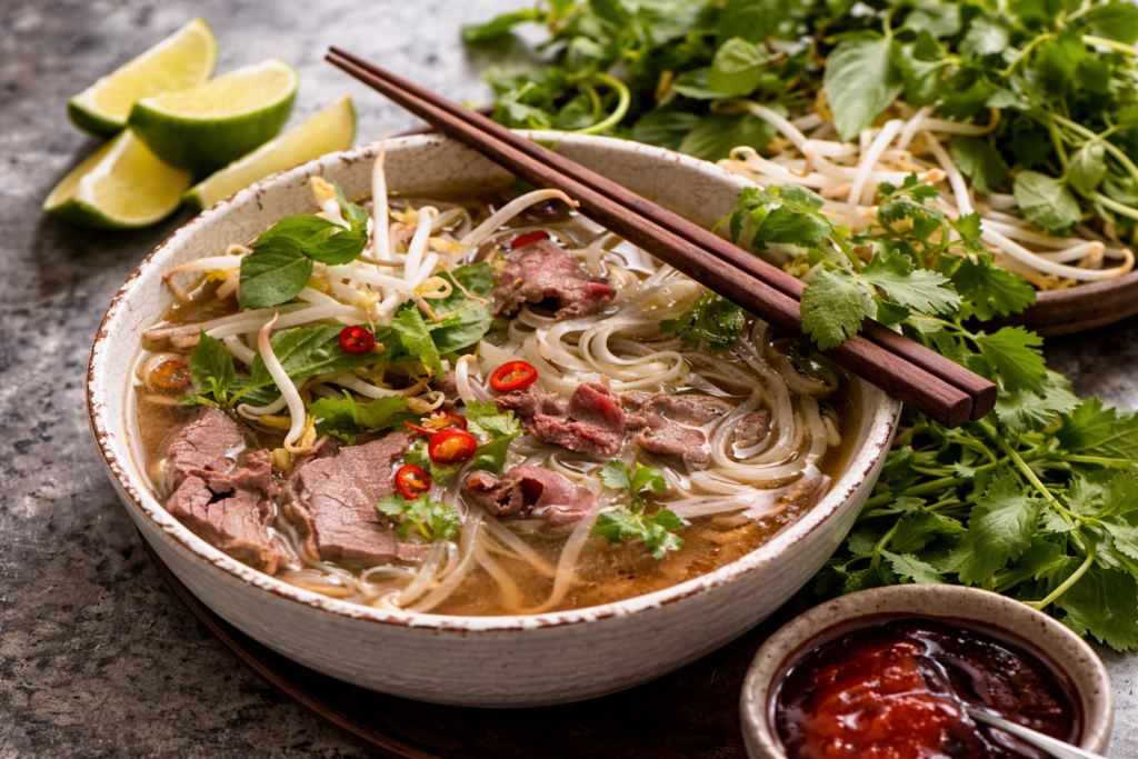 Vietnamese cuisine is celebrated for its remarkable balance of flavors—fresh, bright, and deeply aromatic. Meals often weave together the five essential taste elements: savory, sweet, sour, bitter, and spicy. Fragrant herbs such as cilantro, Thai basil, mint, and sawtooth coriander are used generously, layered with staples like fish sauce, lime, garlic, ginger, and chili to create dishes that feel vibrant and alive.