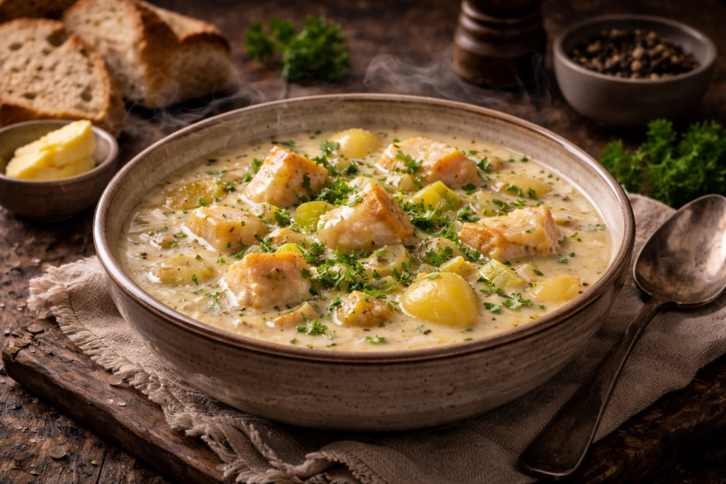 Scottish cuisine is hearty, resourceful, and shaped by the rugged landscapes of the Highlands, fertile Lowlands, and the cold waters of the North Atlantic. Built around ingredients like oats, barley, potatoes, lamb, beef, game, and abundant seafood, the cuisine reflects a tradition of cooking that values nourishment and practicality. Aromatics such as onion, leek, thyme, parsley, and black pepper are commonly used to season soups, broths, and roasted meats, creating flavors that are savory, earthy, and deeply warming.