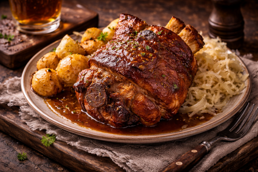 Regional traditions across Germany have shaped a cuisine known for its wide variety of sausages, slow-cooked meats, dumplings, and cabbage-based dishes, often paired with breads, potatoes, or tangy pickled vegetables. Beer also plays an important role, not only as a cultural staple but as a cooking ingredient that adds depth to stews, sauces, and marinades. The result is a cuisine that celebrates bold flavors, rustic cooking techniques, and a long-standing culture of communal meals built around hearty, satisfying food.