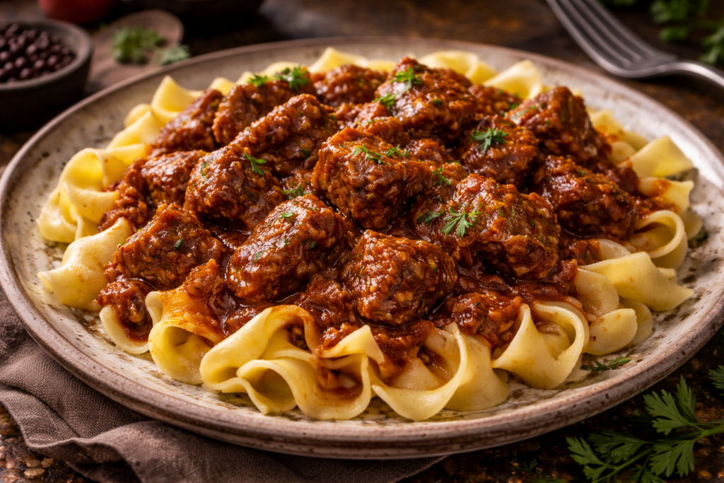 Many dishes begin with onions gently cooked in fat, creating a flavorful base for meats, vegetables, and broths. Sour cream is frequently used to add richness and balance, while pickled vegetables and fresh peppers bring brightness to heavier dishes. The result is a cuisine that is hearty and intensely flavorful—defined by paprika-laced sauces, slow-simmered stews, and the enduring culinary traditions of Hungary.