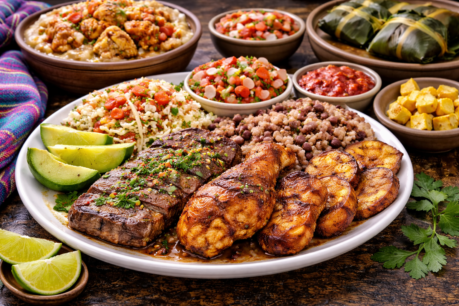 Central American cuisine reflects the rich agricultural traditions and cultural influences of the region, blending Indigenous ingredients with Spanish colonial heritage and regional adaptations. Corn, beans, rice, squash, and fresh tropical produce form the backbone of many dishes, often accompanied by grilled meats, seafood, and vibrant salsas.