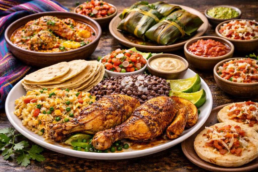 Guatemalan cuisine reflects a deep connection to the country’s Mayan roots, blended with Spanish influences that arrived during the colonial period. Corn remains the heart of the cuisine, appearing in tortillas, tamales, and countless traditional dishes, while beans, rice, squash, and fresh vegetables round out many meals. The food is often rich and comforting, built around slow-simmered stews, roasted chiles, and complex sauces made from toasted spices, seeds, and vegetables.