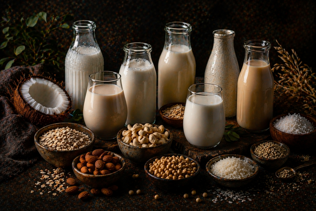 Dairy alternatives offer a parallel path through the kitchen—built not from milk, but from grains, nuts, seeds, and plants that have been transformed to serve similar roles. Oat, almond, coconut, and other plant-based milks bring their own character, from neutral and creamy to subtly sweet or distinctly nutty. Alongside them, plant-based butters, creams, and egg substitutes extend that range further, designed to mimic the structure and function of traditional dairy while introducing new textures and flavors of their own.