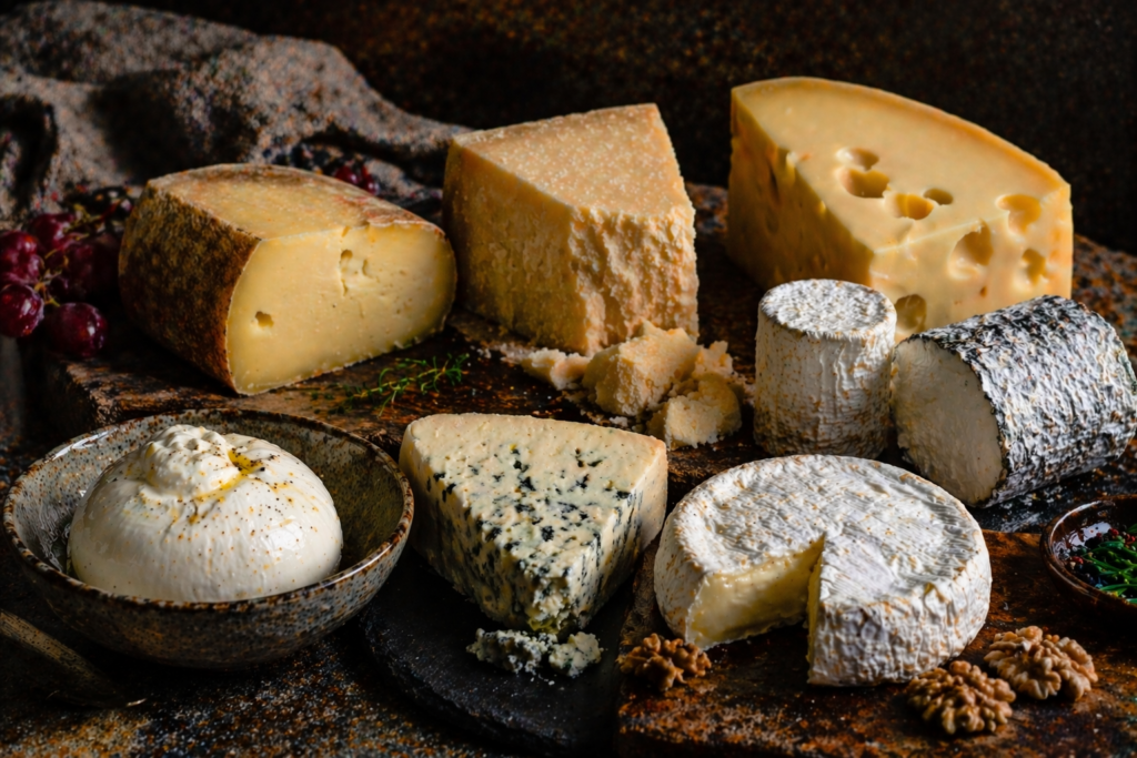 Cheese is milk transformed into structure—concentrated, shaped, and aged to express a wide range of flavors and textures. From fresh and delicate to firm, crumbly, or deeply aged, it moves across the spectrum with intention. Some melt into silk, some hold their form, others crumble or shave into a dish, each bringing its own character. Whether mild and creamy or sharp and assertive, cheese carries both richness and complexity in a way few ingredients can.