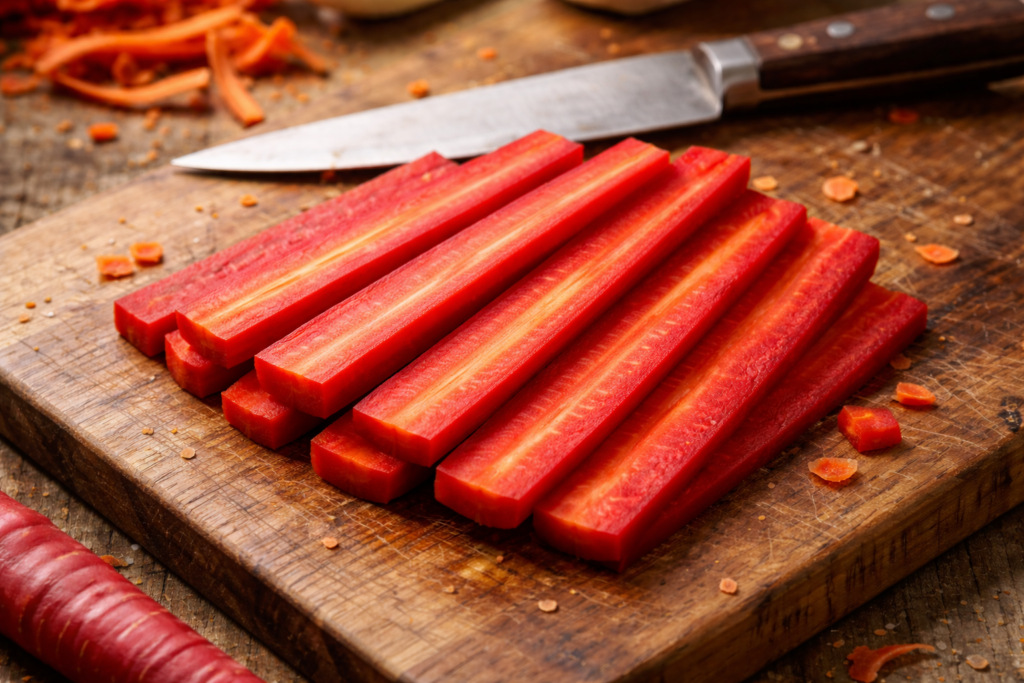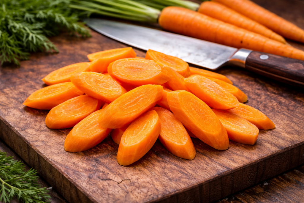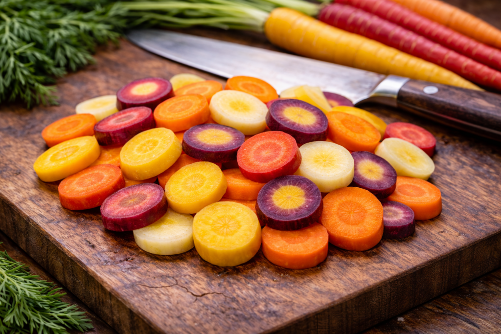 Once the carrots are properly prepped, you’re working with a clean foundation, and that’s where the real decision begins. The way you cut them will shape how they cook, how they carry flavor, and how they move within the dish—whether they hold their structure, soften into the background, or transform into something else entirely. It’s a simple step, but it sets the direction for everything that follows.
